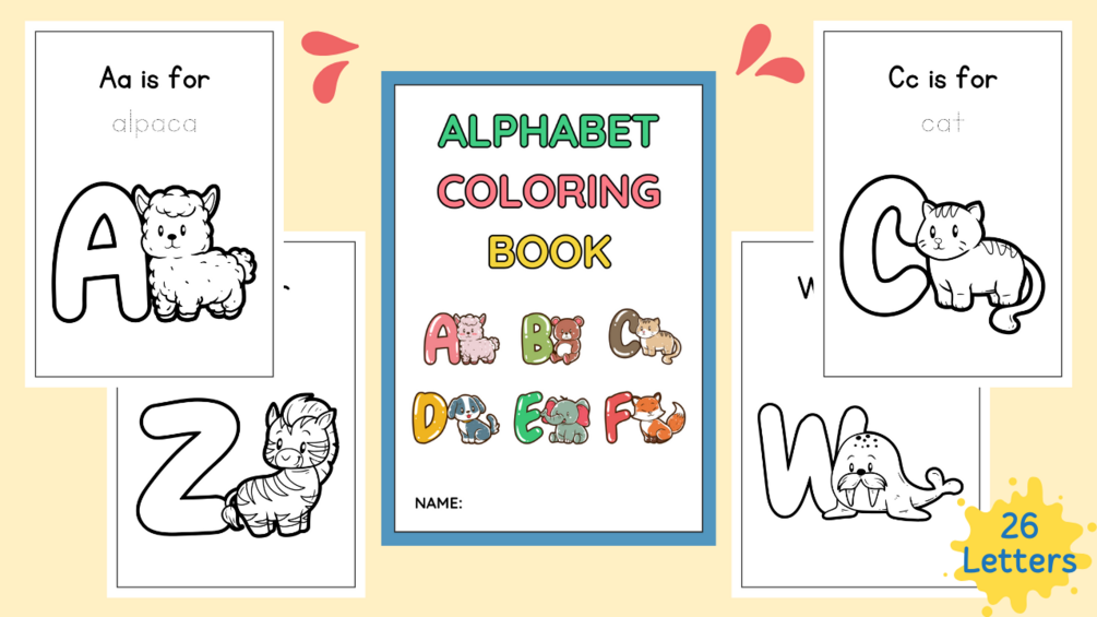 Make learning the ABCs exciting for your little one with this printable alphabet coloring book! Each of the 26 pages features a beautifully designed letter alongside an adorable animal illustration to color, helping children associate letters with words in a fun and engaging way.
